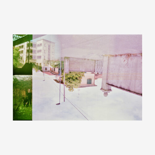 Servendosi di pellicole fotografiche 35 mm a colori scadute agli inizi degli anni 2000 e alterate dal passare del tempo, gli artisti hanno affrontato l’esercizio della doppia esposizione scegliendo di esplorare aree urbane e luoghi resi anonimi dalla sovrapposizione degli scatti in diverse zone della penisola. Amelia Dely ha fotografato con una macchina fotografica Contax 159, ha poi riavvolto il rullino che è stato riutilizzato da Tanguy Bombonera con una macchina View-Master Personal Stereo Camera a due obiettivi. I risultati di questa pratica condivisa, di volta in volta pensati oppure lasciati al caso, sono sorprendenti e poetici, frutto di un lavoro svolto con strumenti e materiali analogici.